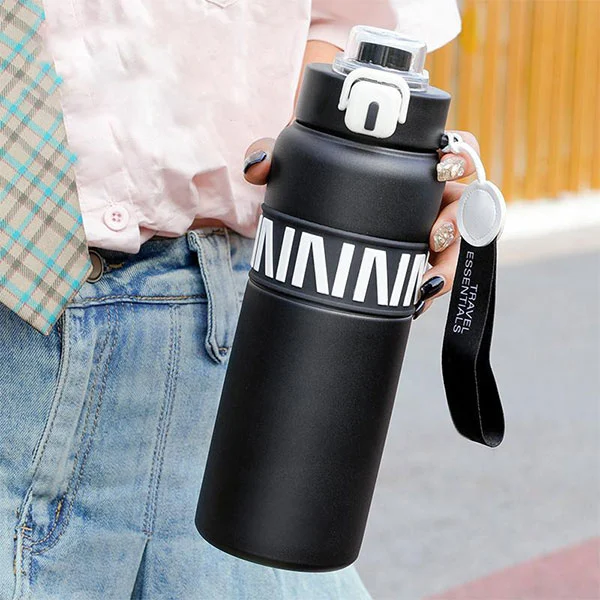Ова е котел за патувања со вакуум во вакуум во стил на не'рѓосувачки челик.