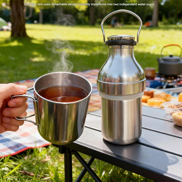 Издржливото изолирано шише на Kudike на отворено што се одвојува е многу кул термос, зошто го велите тоа? Поради уникатниот дизајн и функционалноста, може да се расклопи во две чаши, што значи дека кога купувате термос, повеќе луѓе можат да го користат заедно. Доаѓа и со рачка, што го прави многу удобен за носење. Верувам дека нашето шише со термос ги исполнува сите аспекти на вашиот прекрасен живот. Без разлика дали станува збор за кампување, патување, планинарење или патување, можеме да обезбедиме контејнери кои се и изолирани и ладни, ефикасно намалувајќи го отпадот за еднократна употреба.